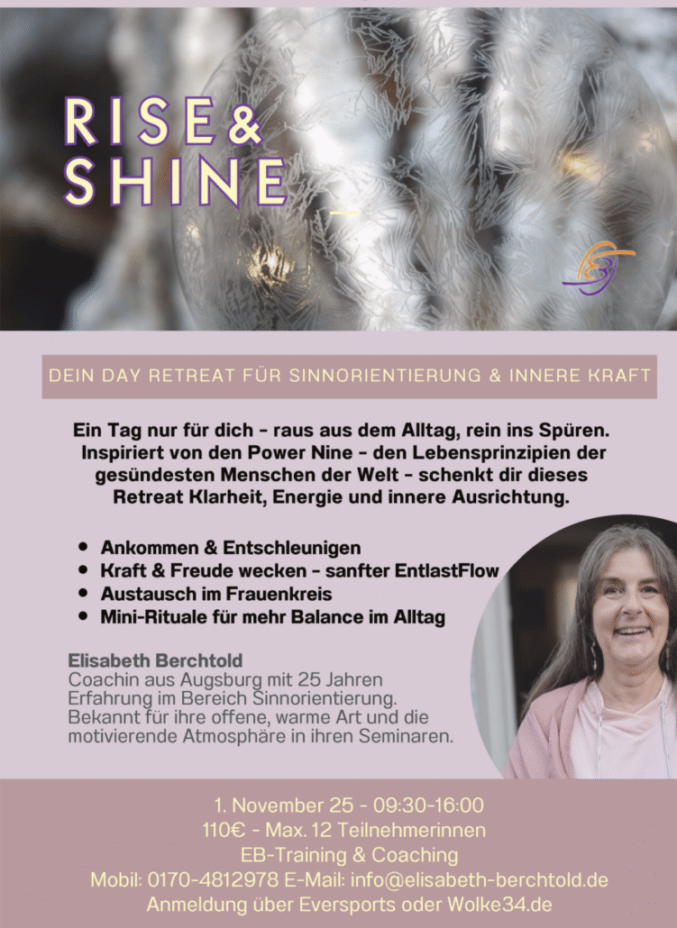 Inspiriert von den Power Nine – den Lebensprinzipien der gesündesten und ältesten Menschen der Welt – bekommst du Tools, die sofort im Alltag wirken. 👉 Was gibt dir Sinn? Was hilft dir, deine Kraft sinnvoll einzusetzen? Antworten findest du in diesem Retreat.